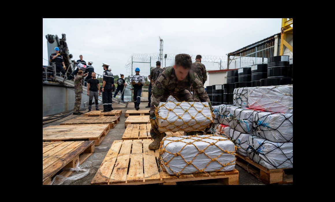 La saisie a été réalisée le 6 octobre par un bâtiment de la Marine nationale lors d’un contrôle d’un navire sans pavillon. Les militaires ont découvert « plus de sept tonnes de produits stupéfiants » répartis en 250 ballots, soit 7 056 kg de cocaïne, dissimulés dans une soute. Le navire a été ramené au port de Fort-de-France en Martinique (photo ci-dessus).