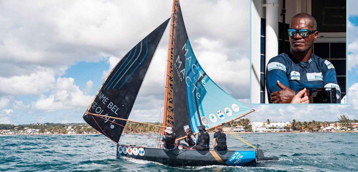 Novembre 2022. 1ère édition du Trophée des Saintoises, Route du Rhum - Destination Guadeloupe. Photomontage embarcation Macte an nou, en médaillon Carl Chipotel, président de l’Anasa.