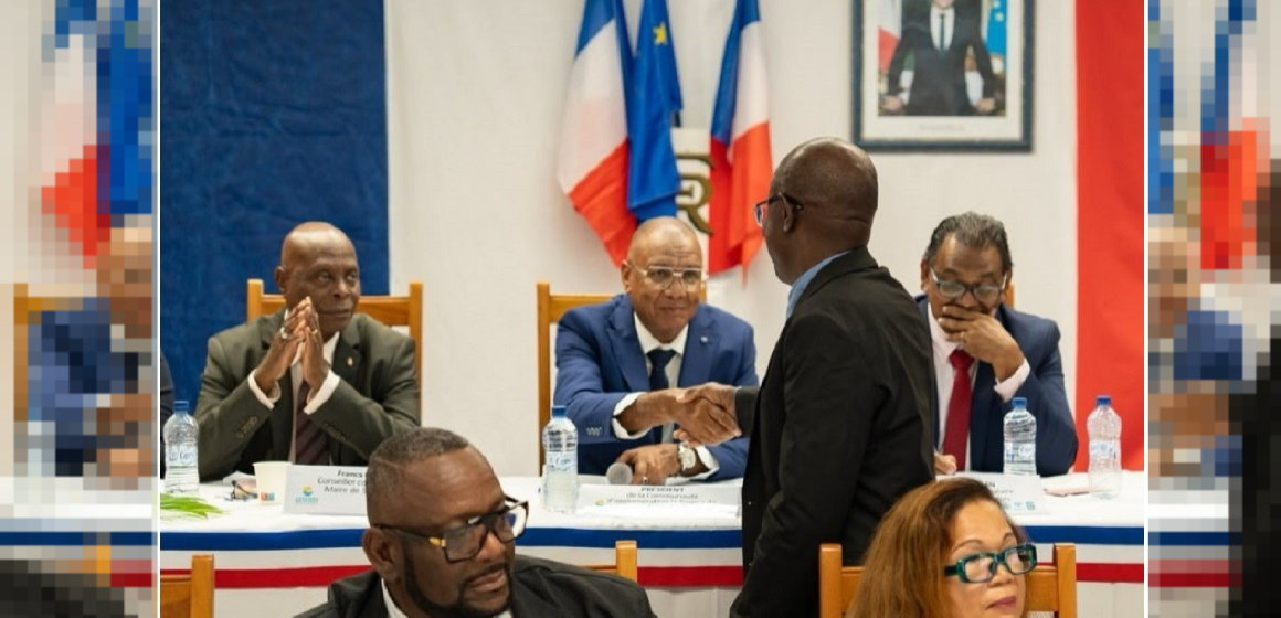 La communauté d’agglomération de la riviera du levant (Carl) a tourné une page de sa gouvernance samedi 11 avril. Michel Hotin, maire du Gosier (au centre photo ci-dessus), a été élu président de l’institution intercommunale, succédant à Loïc Tonton, maire de La Désirade. Ce dernier avait choisi de ne pas briguer un nouveau mandat. Si l’issue du scrutin peut paraître sans appel – 37 voix contre 8 pour son unique adversaire, Keetter Sylvain conseiller municipal et communautaire du Gosier – elle est en réalité le fruit de tractations discrètes, de renoncements stratégiques et d’alliances nouées dans l’ombre entre les principaux édiles du territoire.