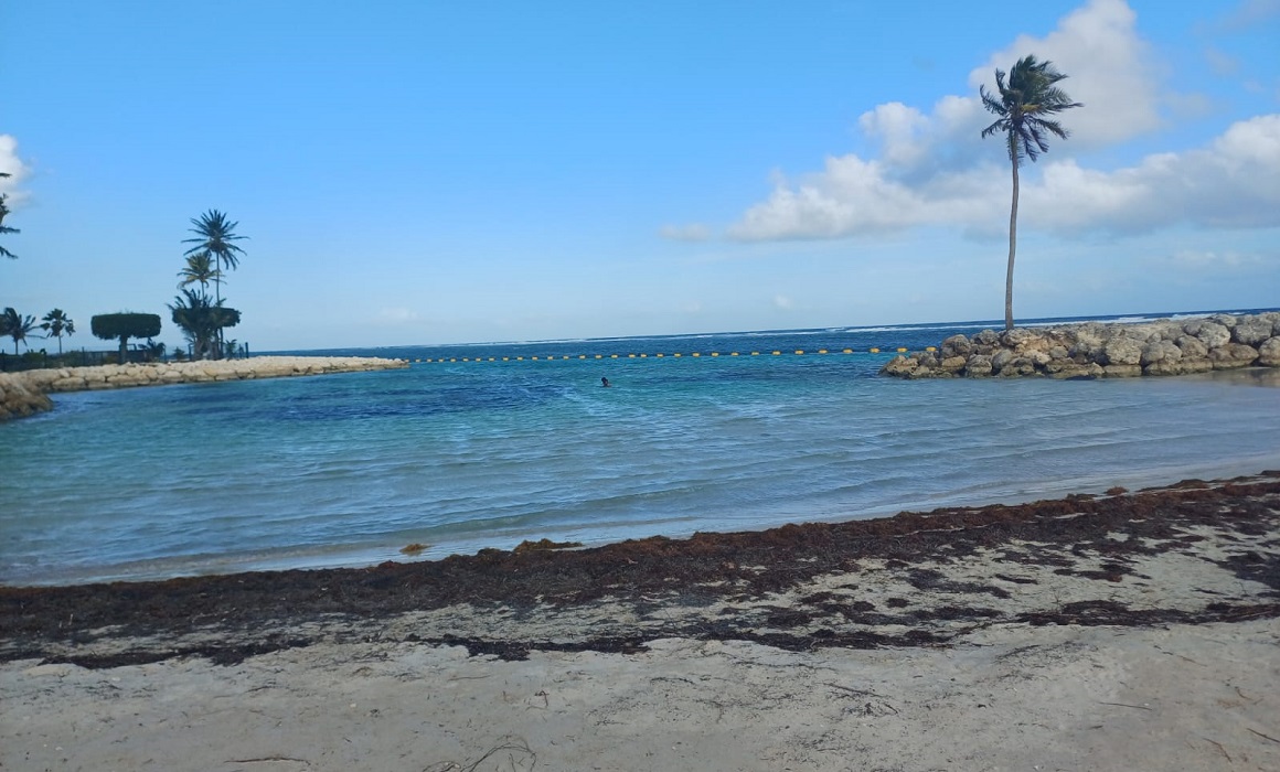 Sargasses sur la plage du bourg de Sainte-Anne, avril 2026. Photo : LCG
