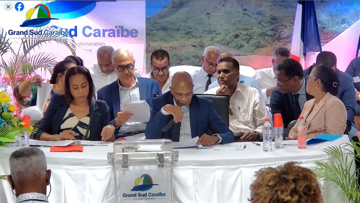 L’assemblée communautaire de la communauté d’agglomération Grand sud caraïbes a installé ses instances dirigeantes le 8 avril 2026. Photo : Capture écran Communauté Grand Sud Caraibe